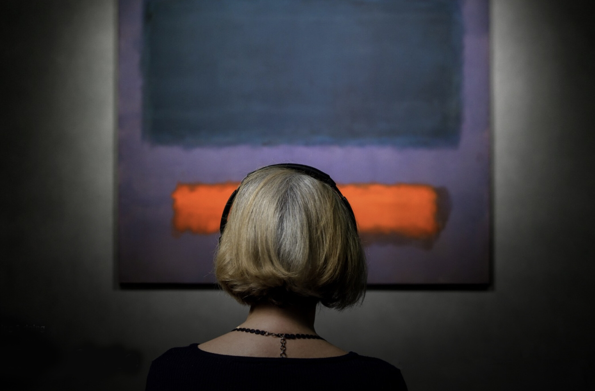 Transcendence? Nothing approximating euphoria here, baked into the 56 million dollar, unvarnished abstraction. Only a garish slash of throbbing orange against the maroon that is not maroon but eggplant. The grey—now, we could get lost in the grey. There’s some delicious bleakness packed in that gaping rectangular void, into which any soul could tip. But it is not a rapturous void.